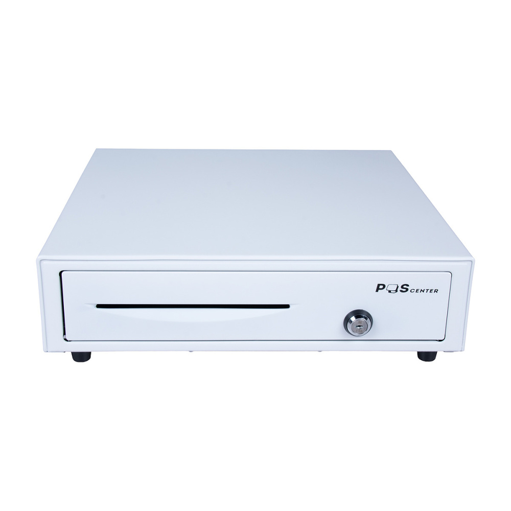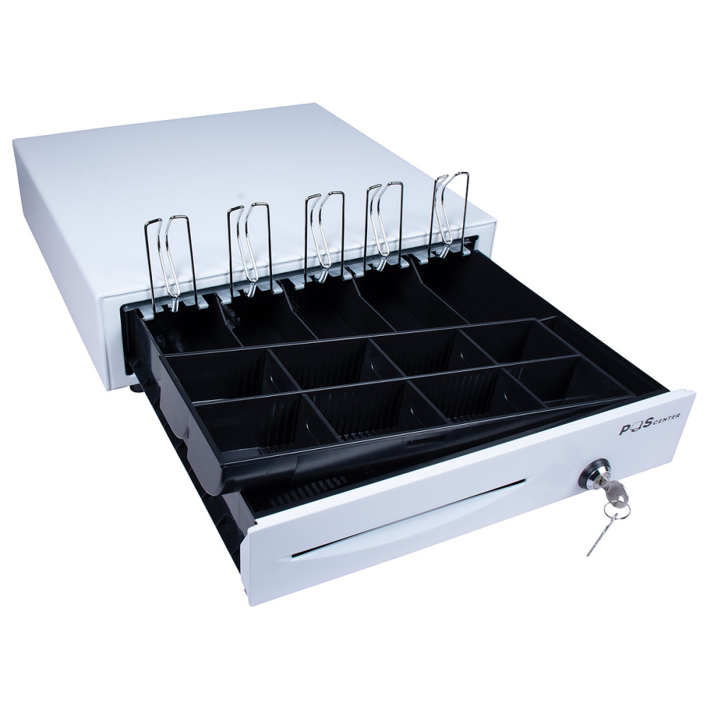 Денежный ящик POScenter 16E имеет 5 отделений для банкнот и 8 отделений для монет, что обеспечивает удобную и организованную систему хранения. Подключение осуществляется через 6-контактный разъем RJ11.