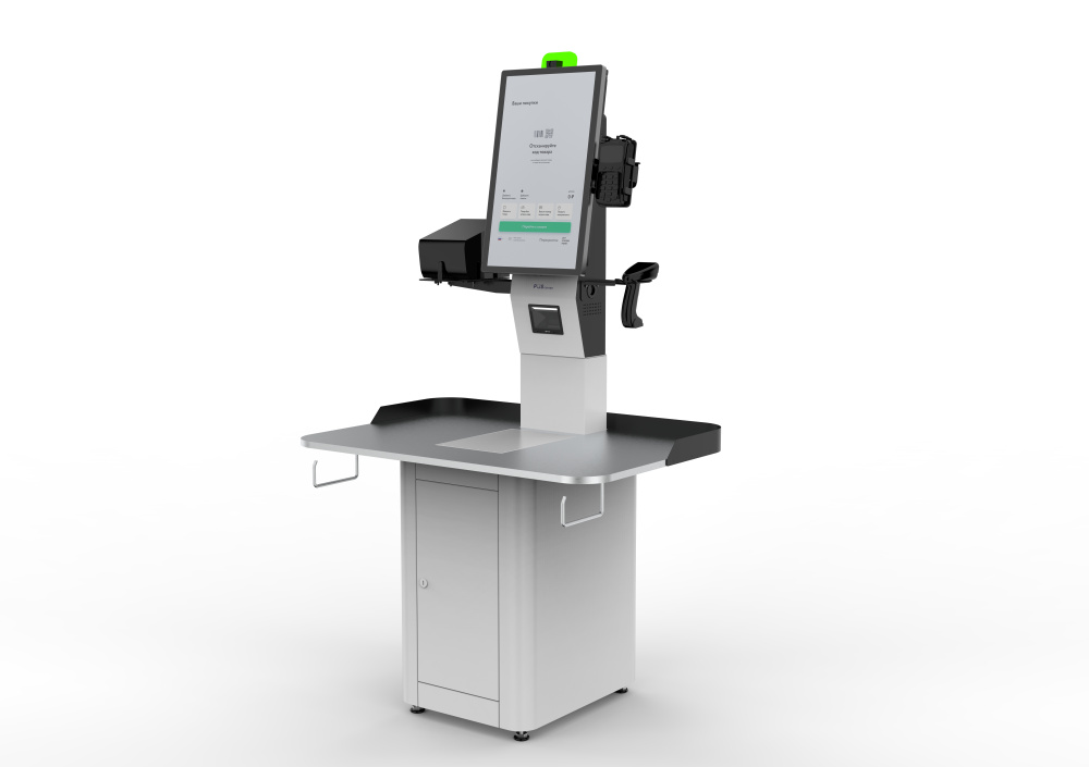 POScenter SCO-М210 разработана для форматов супермаркет и гипермаркет, удобной тумбой со столешницей шириной 110 см, с повышенным требованием к объему «корзины» покупателя.